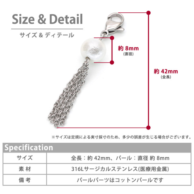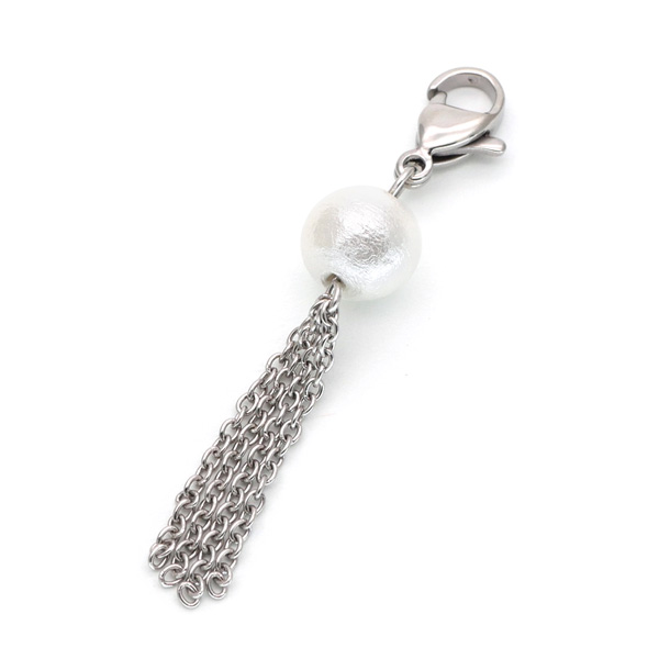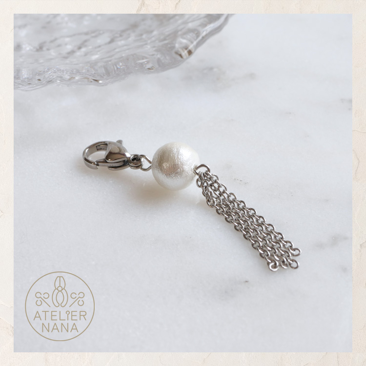 【ハンドメイドキット】コットンパールタッセルチャームキット ハンドメイド 手芸 材料 作家 製作キット 金属アレルギー対応 ステンレス ピアスやポーチに付けるカスタムチャーム 両耳用 アトリエナナ atelier-nana pa-seisaku-009