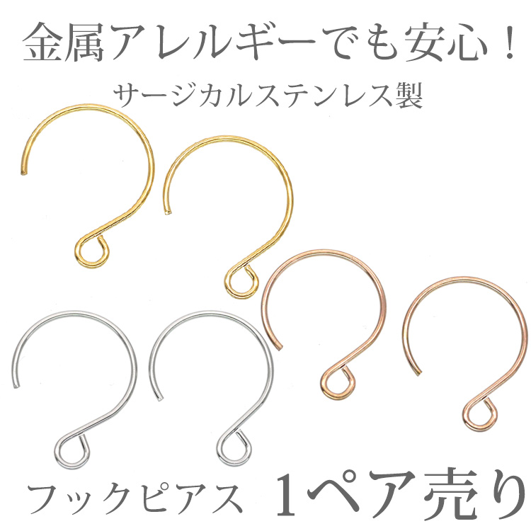 金属アレルギー対応 アクセサリーパーツ ピアス用金具 リングフックピアス金具 ハンドメイド 手芸 パーツ サージカルステンレス pa701