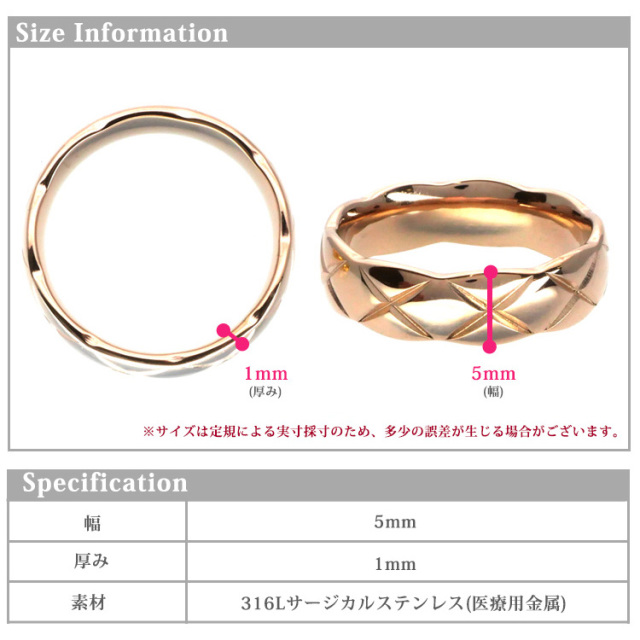金属アレルギー対応 ステンレスリング キルティングリング 指輪 ゆびわ 316L rng025