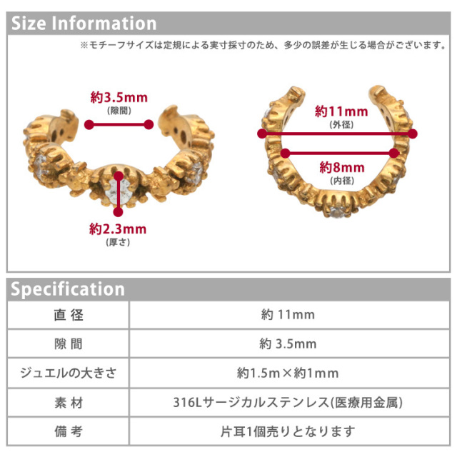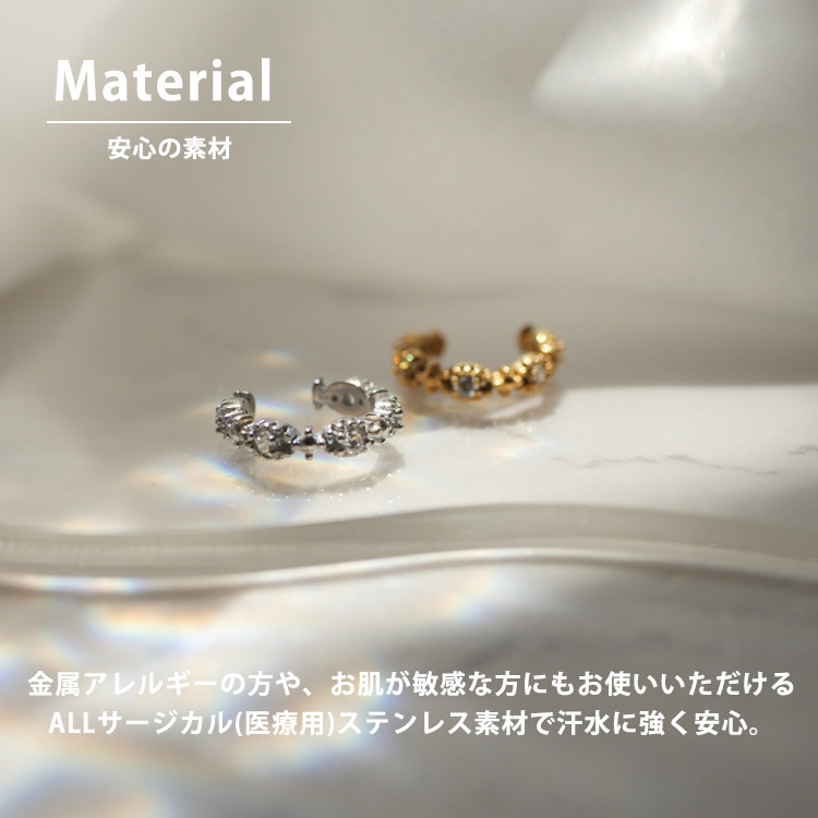 TOPページイヤリング・イヤーカフ ステンレスイヤーカフ ミル打ちジュエルイヤーカフ 片耳用 イヤーフック 金属アレルギー 316L scec218 価格: ¥1,990 (税込) [ポイント2倍中 199ポイント〜] 販売期間: カラー: 選択してください シルバー ゴールド 数量: 個 カラー在庫シルバー○ゴールド○ 返品についての詳細はこちら レビューはありません