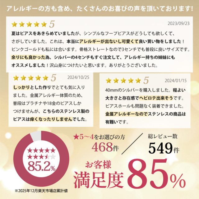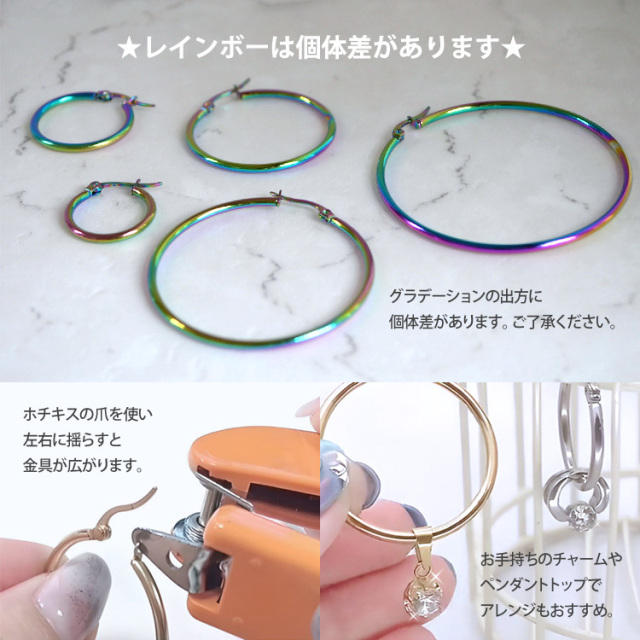 金属アレルギー対応 シャイニーラウンドフープピアス つけっぱなし キャッチレス sceh004