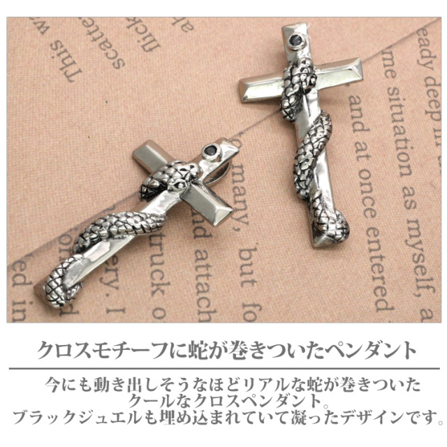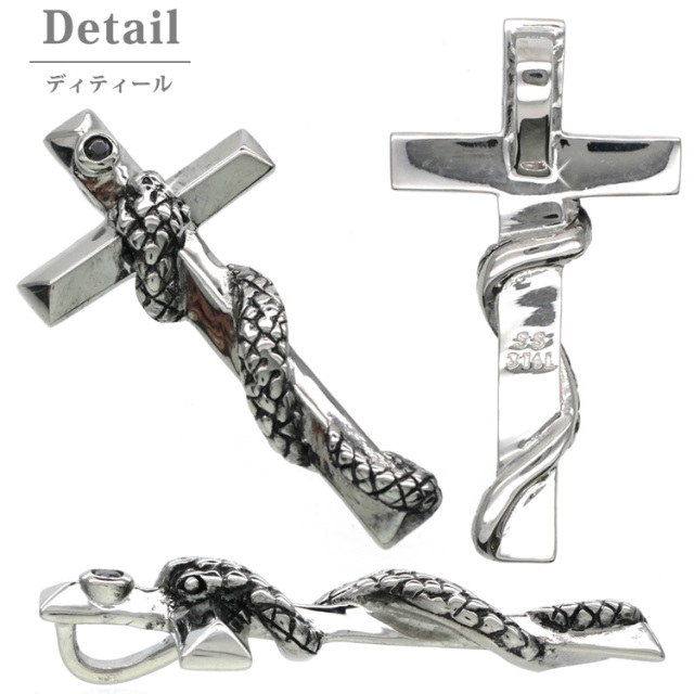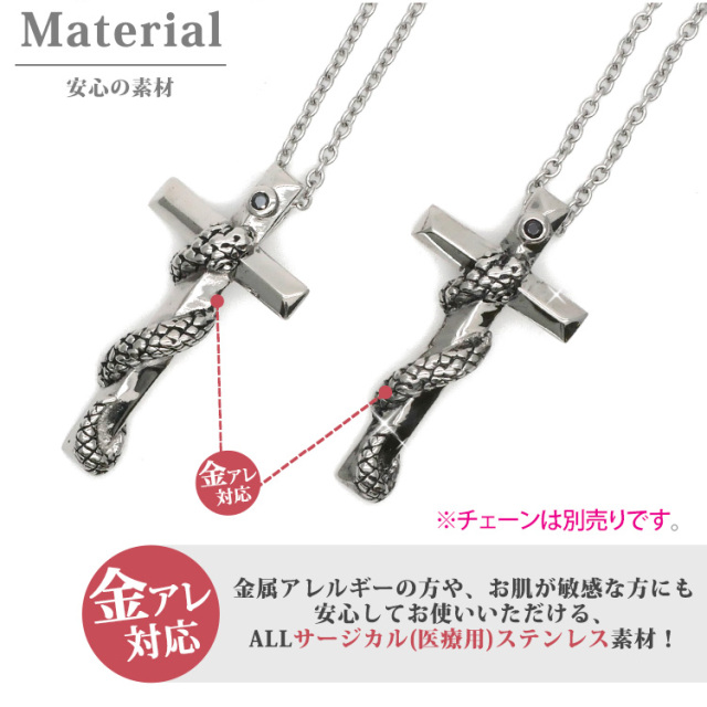 金属アレルギー対応 ステンレスペンダント スネーククロスペンダントトップ ステンレスネックレス 安心 316L ニッケルフリー scpe270