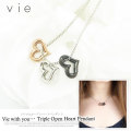 ステンレスネックレス vie トリプルオープンハートペンダント ネックレスチェーン付 金属アレルギー 316L 誕生日 記念日 クリスマス ホワイトデー ギフト プレゼント アクセサリー 彼女 女性